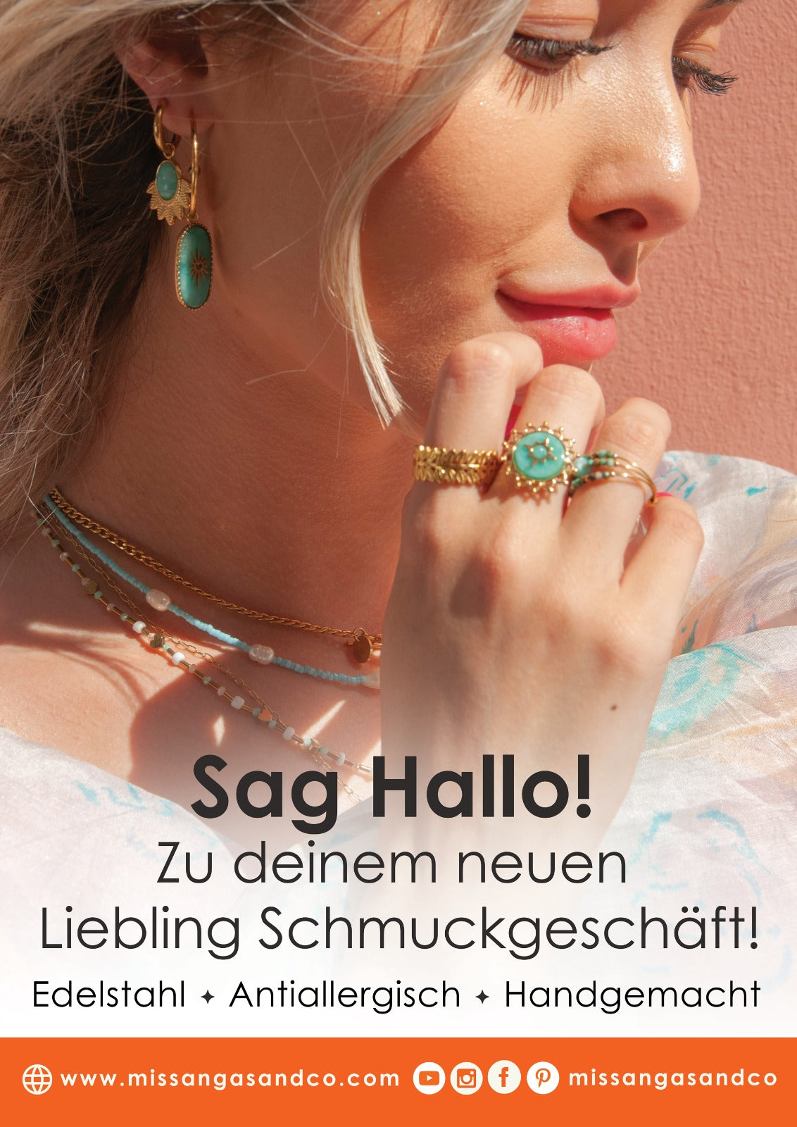 In unseren Geschäften finden Sie handgefertigten Schmuck, der mit Liebe in unserem Atelier in Lissabon und von Handwerkern aus der ganzen Welt gefertigt wird. Wir bieten allergikerfreundlichen Schmuck aus Edelstahl an, der schön und einzigartig ist. Entdecken Sie exklusive Stücke, die Ihre Schönheit unterstreichen und Ihre Persönlichkeit widerspiegeln.